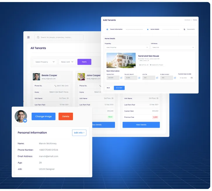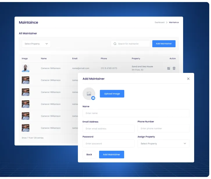 RentPro allows efficient management of staff, tenants, and maintainers through role-based access, ensuring seamless communication, task assignment, and performance tracking—all within a centralized platform.